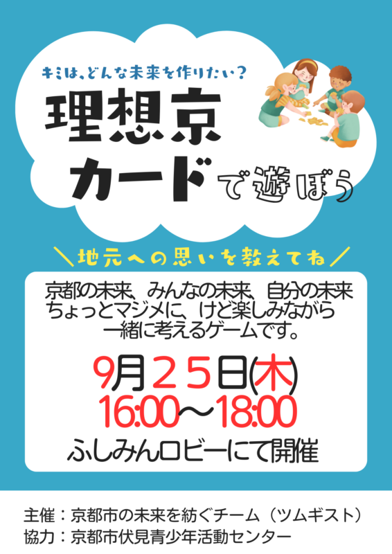 京都の未来、みんなの未来、私の未来がどんな風になったらいいかな、どんな風にしたいかな…を 自分の言葉で語るゲームです。