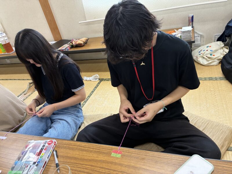 ミサンガづくりは、左右編みチームと三つ編みチームの2グループに分かれて作業スタート!