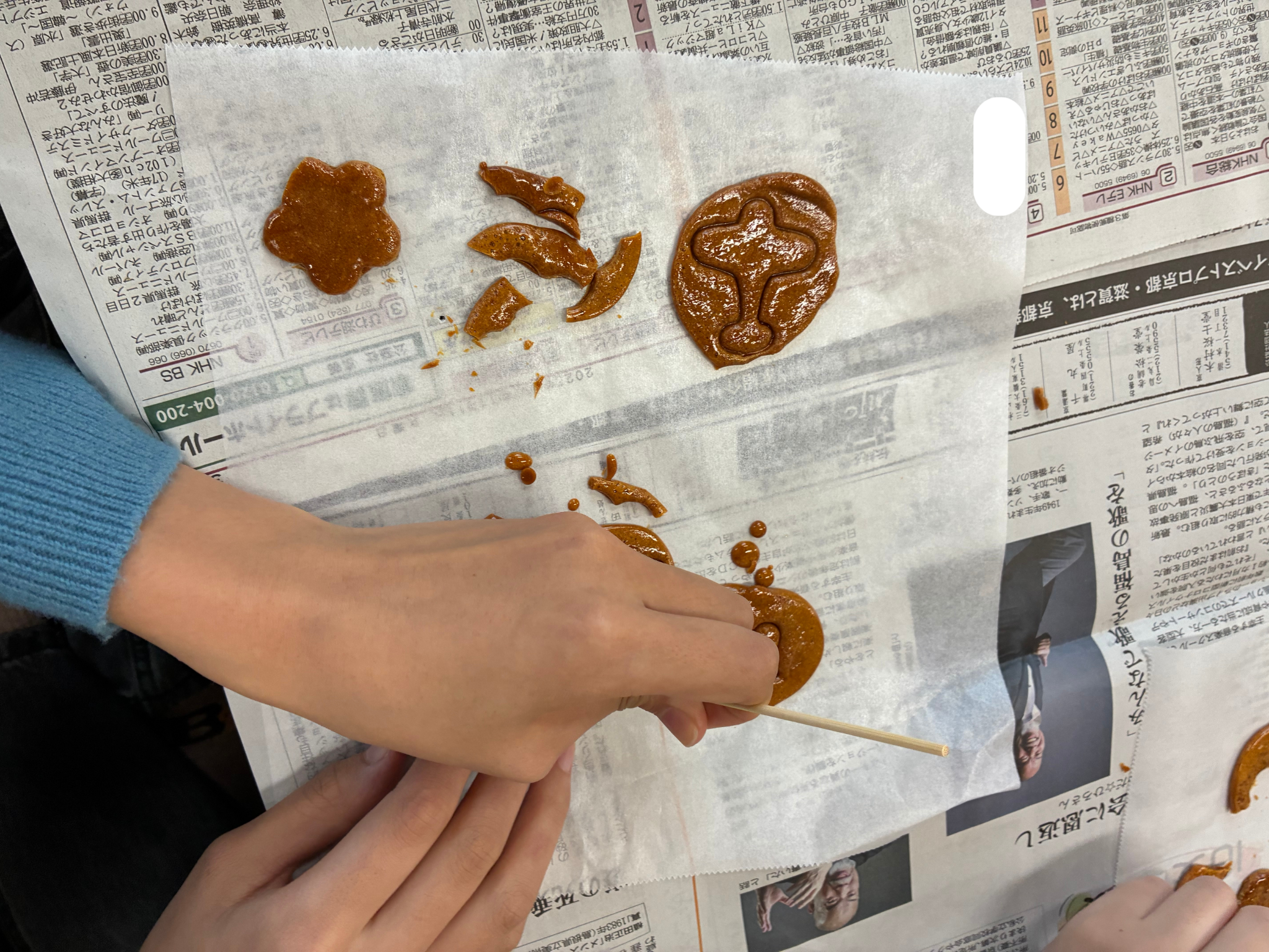 あま~い香りが料理室いっぱいに広がりました。割れないように丁寧に型抜きをして、カルメ焼きの出来上がり!