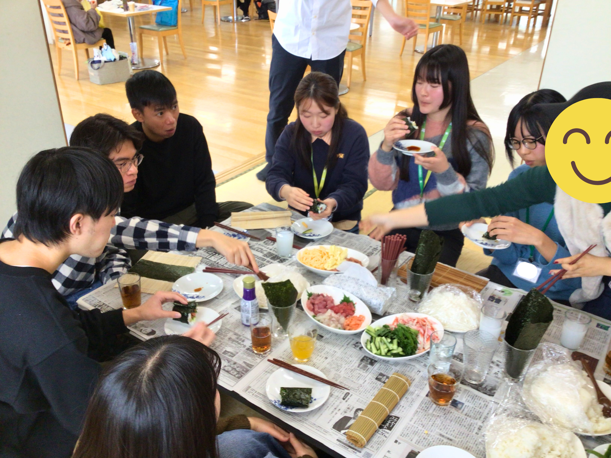 お互いの食文化を知りながら、オリジナルの手巻き寿司を頬張りました!