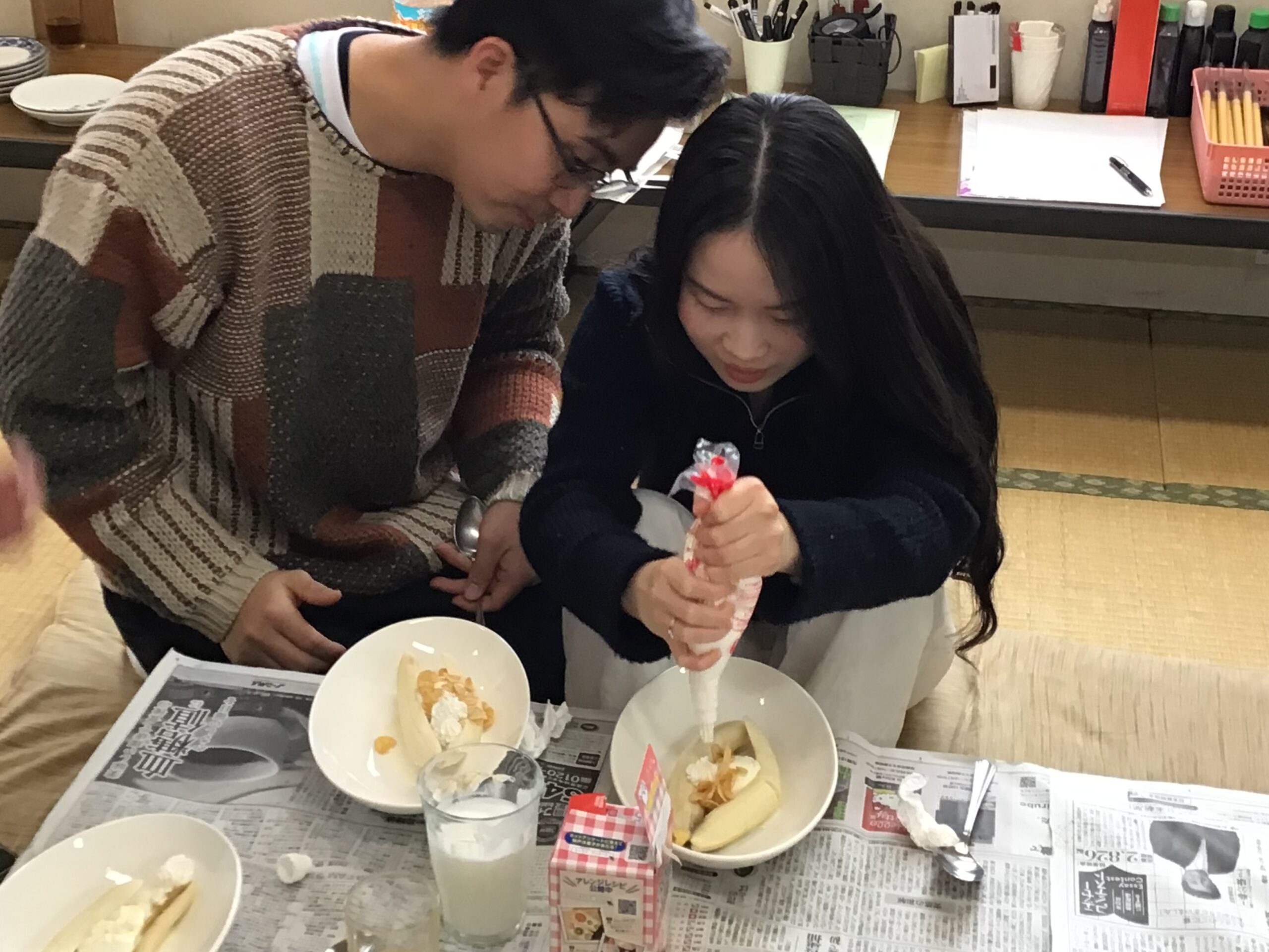 また、「手巻き寿司でお腹いっぱい…」と言いつつ、みなさんデザート(バナナスプリット)は別腹でした。