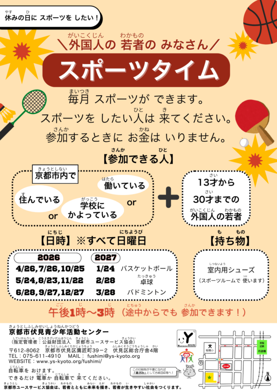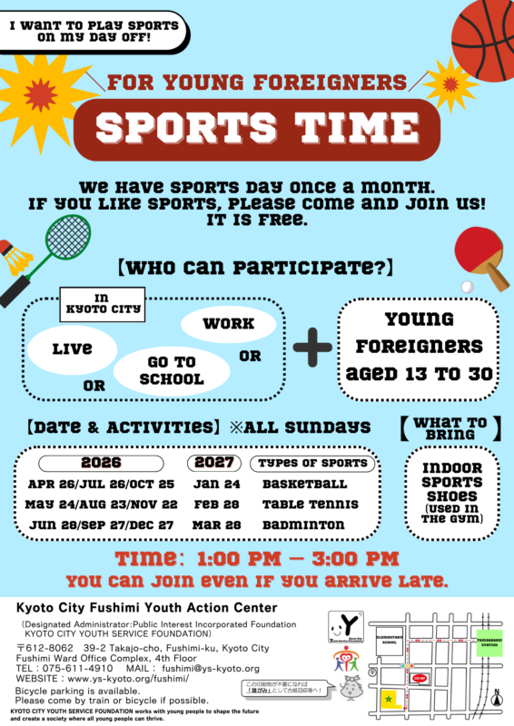 京都市内で住んでいるor学校にかよっているor働いている13才~30才までの外国人の若者