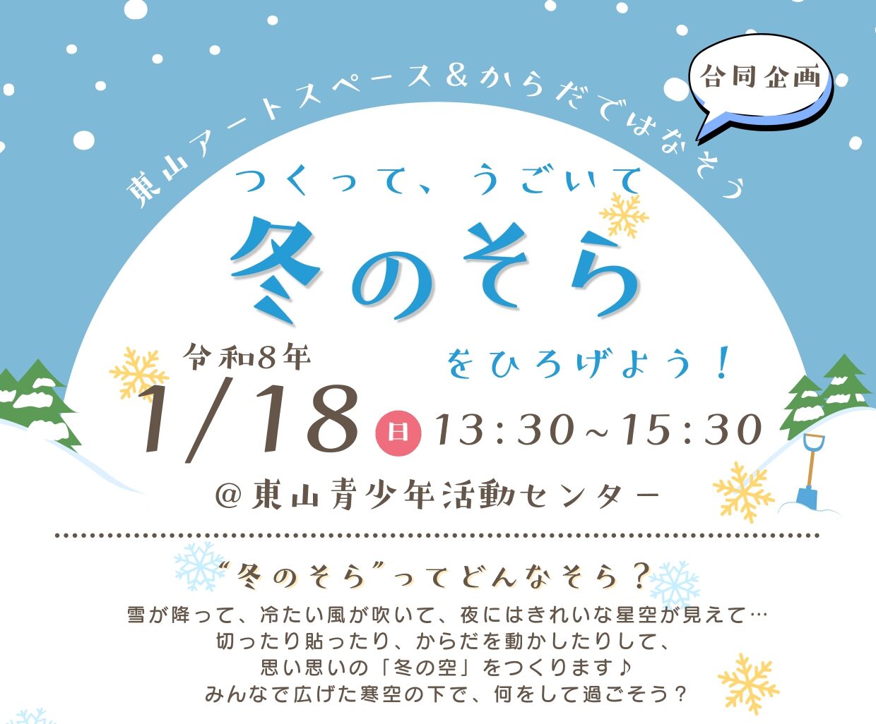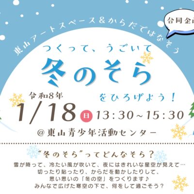 東山アートスペース&からだではなそう合同企画 参加者募集! 令和8年1月18日(日)、東山アートスペース&からだではなそう合同企画「つくって、うごいて 冬のそら...