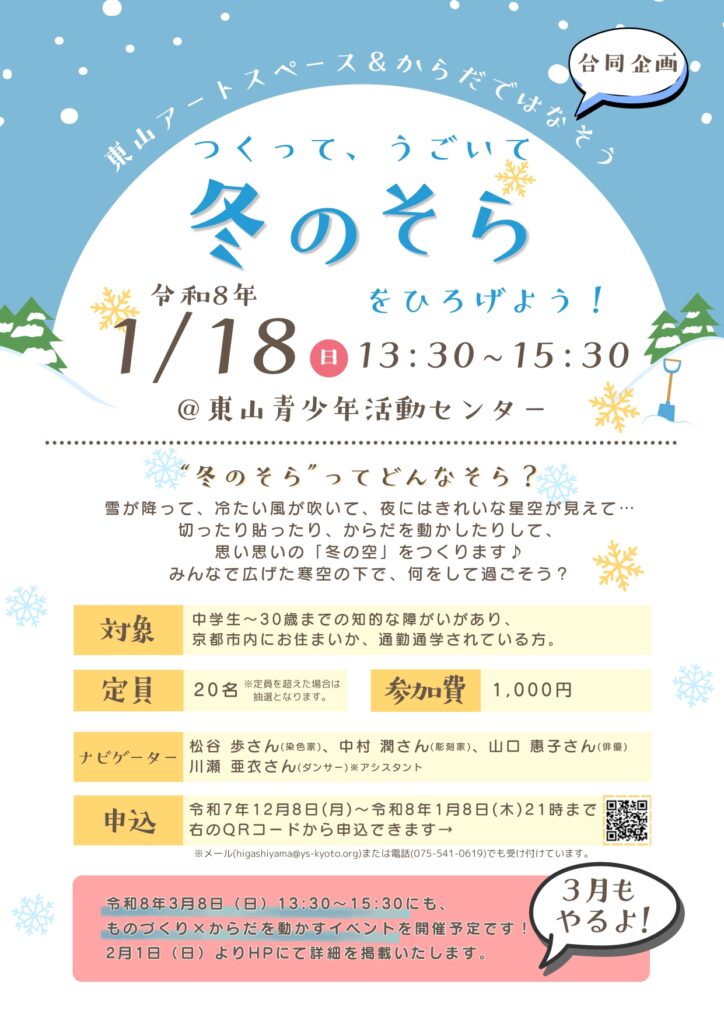 令和8年1月18日(日)、東山アートスペース&からだではなそう合同企画「つくって、うごいて 冬のそらをひろげよう!」を実施します!