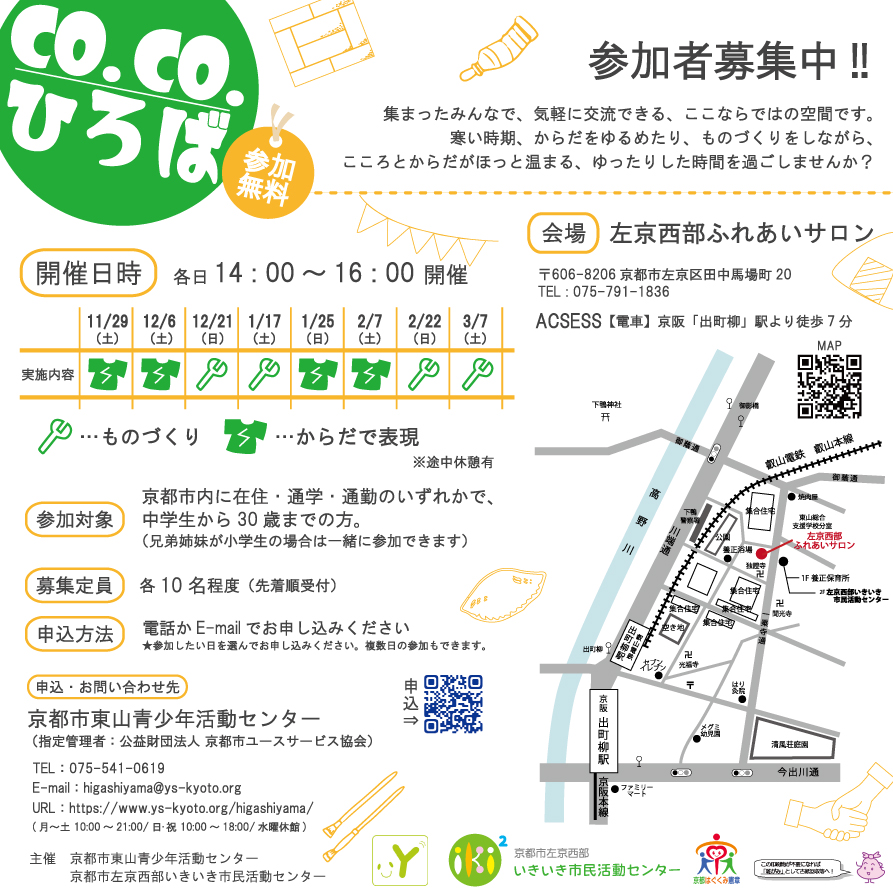 申込方法:京都市東山青少年活動センターまで、電話(075-541-0619)かE-mailでお申込みください。