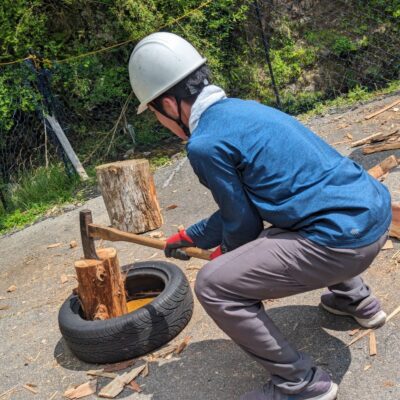 【地域体験プロジェクト】薪割りと炭切体験 雲ケ畑地域の自然を満喫できるプログラムになっています! 山仕事サークル杉良太郎や職人の方に、薪割りや炭切...