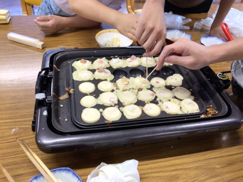 初対面の参加者同士の回もありましたが、たこ焼きや学校の話題で盛り上がりました。