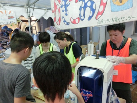 VoM’s(ボムズ)として児童館の模擬店のお手伝いをします。このひはかき氷のお手伝いをします!