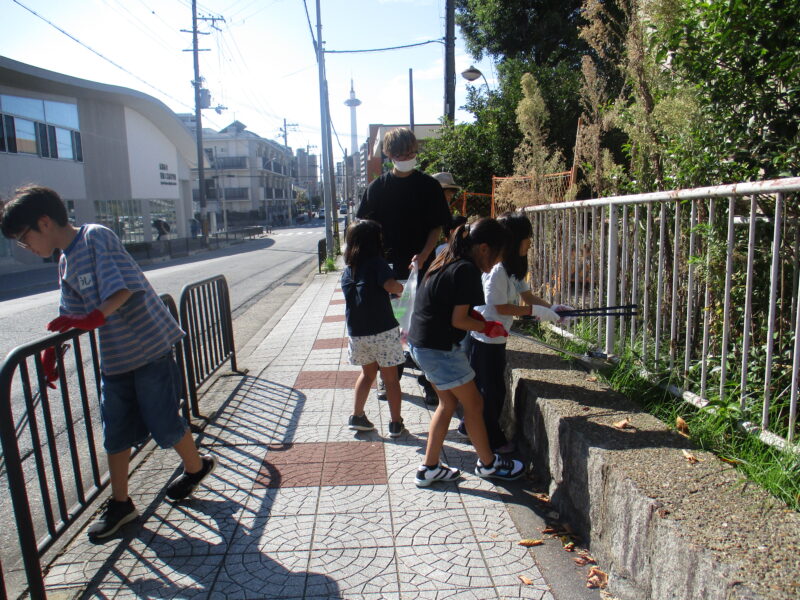 そして、いよいよお待ちかねの清掃ボランティアに。鴨川方面に移動し、グループごとに活動を行いました。