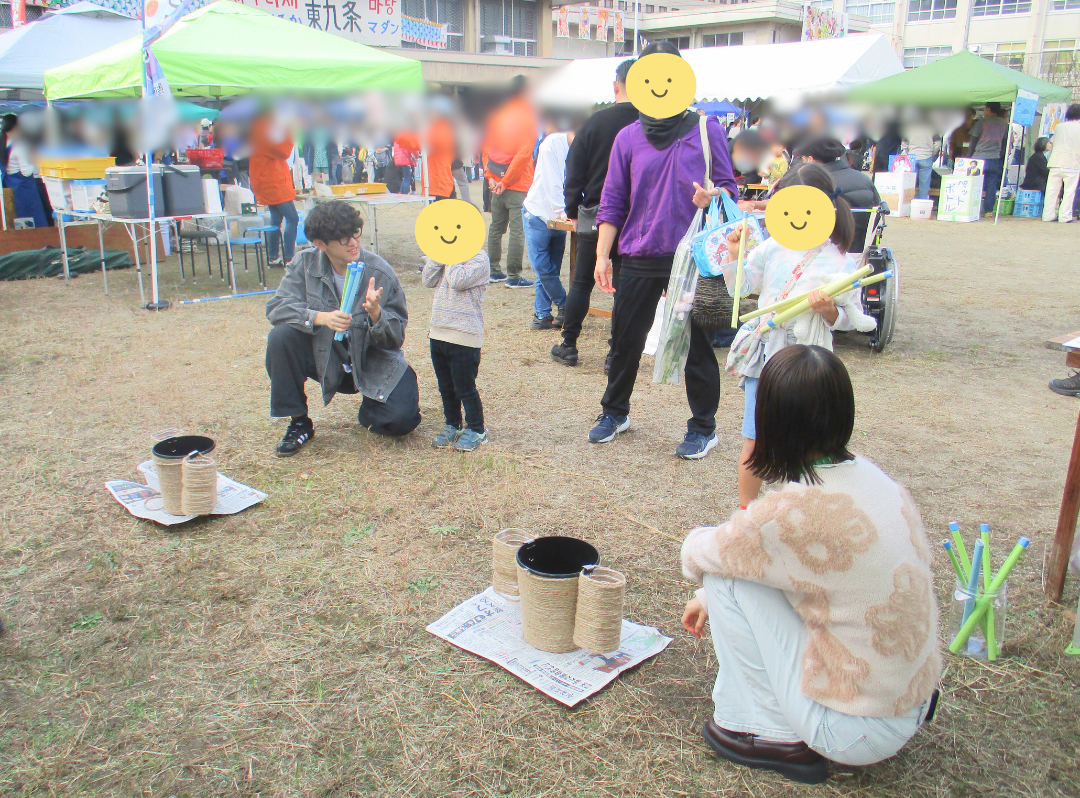 よきDELIスタッフ4名、実習生2名の計6名での参加でしたが、ゆとりを持って運営することができ、それぞれ他の遊びコーナーに遊びに行ったり、出店を回ったり、和太鼓やサムルノリの演奏も見させてもらい、お祭り自体も楽しめたイベントになりました。