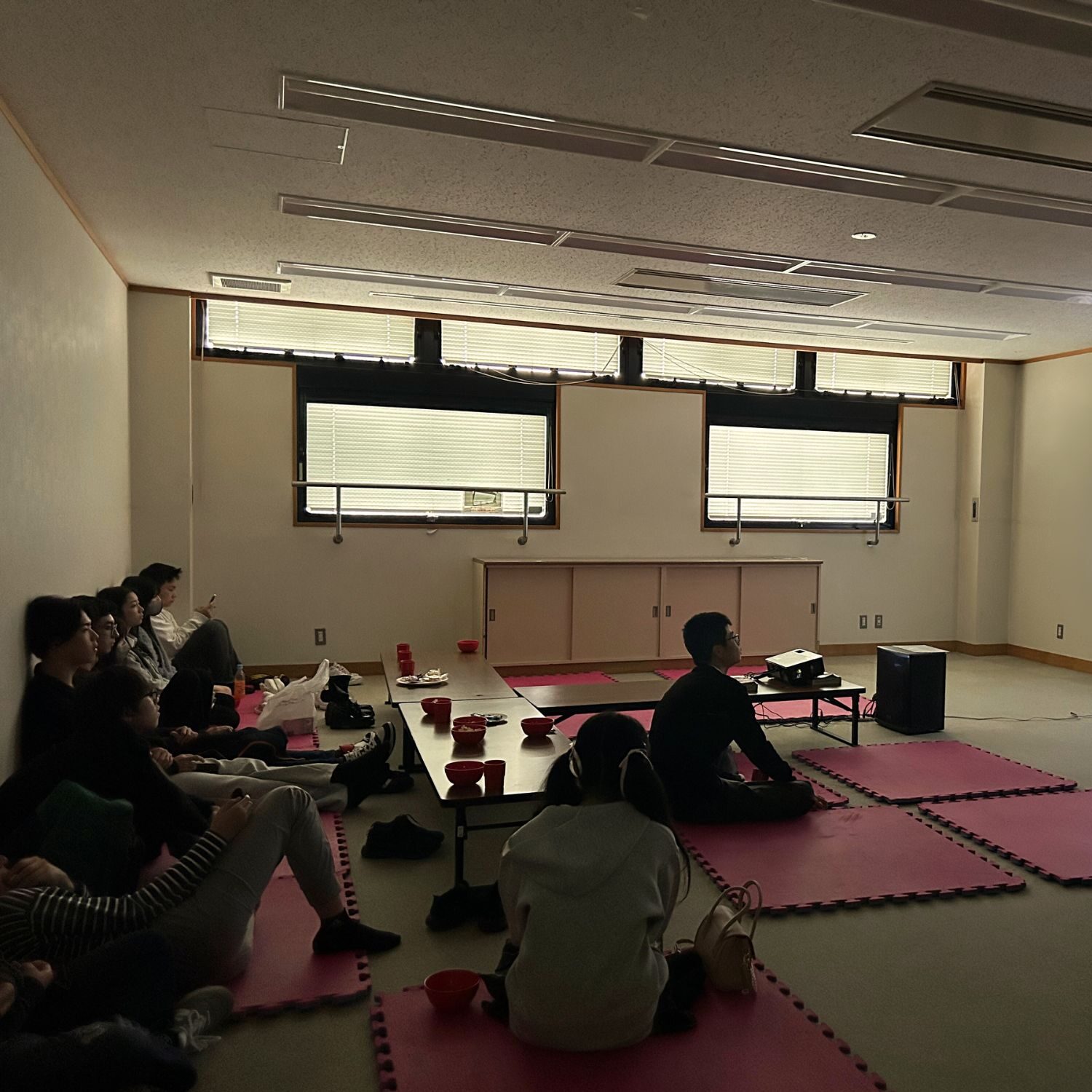 プロジェクターとステレオを使い、ポップコーンも準備して、センターの大会議室を