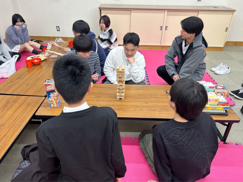 動画を見た後は、ボードゲームTime♪ジェンガ組とカタカナーシ組(※お題のカタカナ語を、
