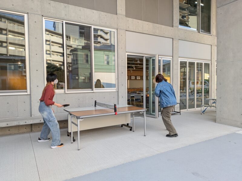 上着を脱ぎ、白熱した卓球対戦が行われていました。