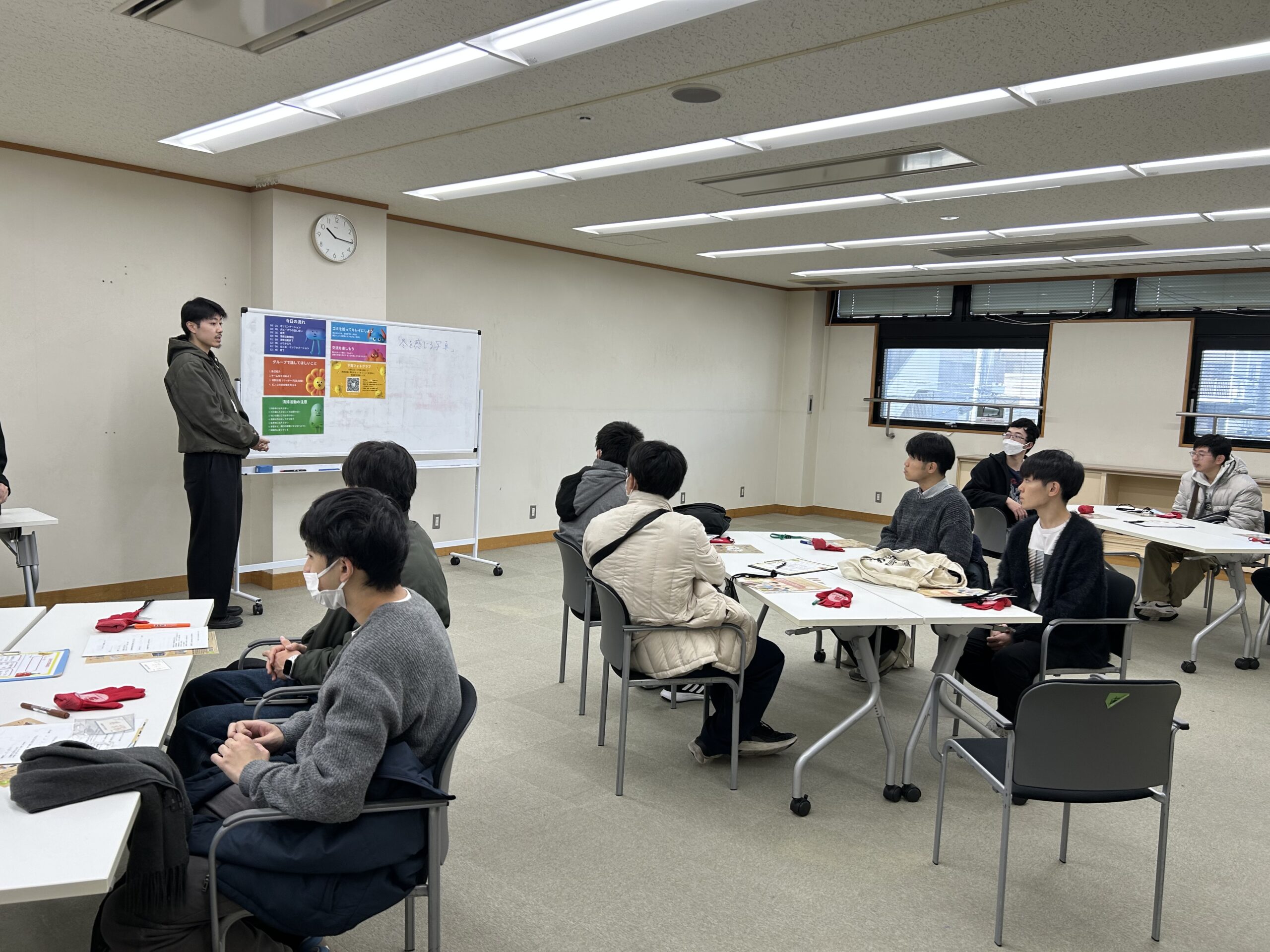 集まってくれたボランティアは全員男性で、はじめは少し静かな雰囲気でしたがオリエンテーションでは共通の話題も多かったようで、どのグループもすぐに和やかな空気に。グループ名決めもそれぞれが話し合ってスムーズに決まりました。