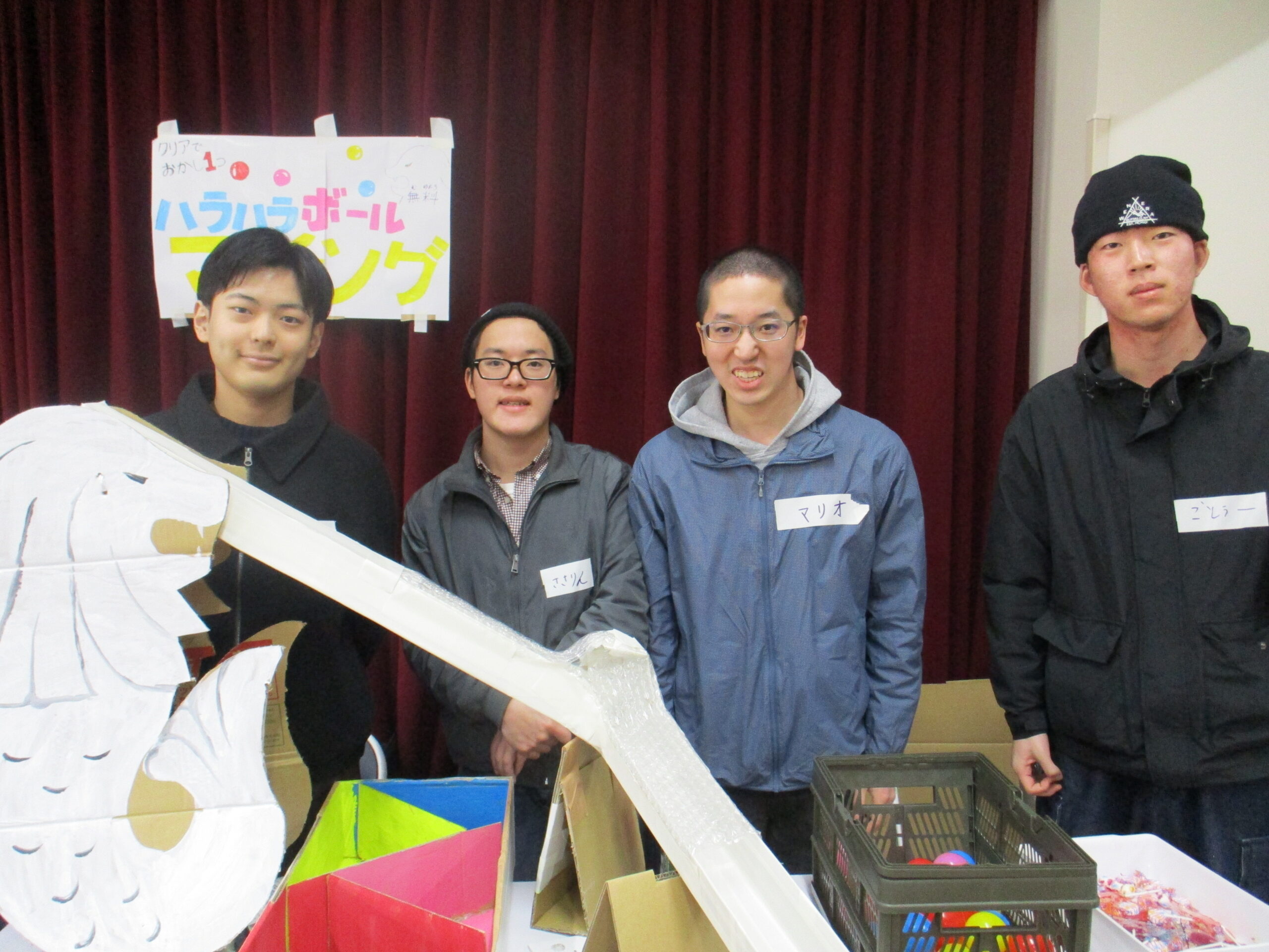 今回はブースでのレクを楽しんでもらうのはもちろん、イベント出展者の一員として、イベントに来てくれた参加者の方々が楽しめるよう、挨拶や声掛けを頑張りたいと活動開始前にリーダーを担ってくれた“ささりん”が話してくれました。