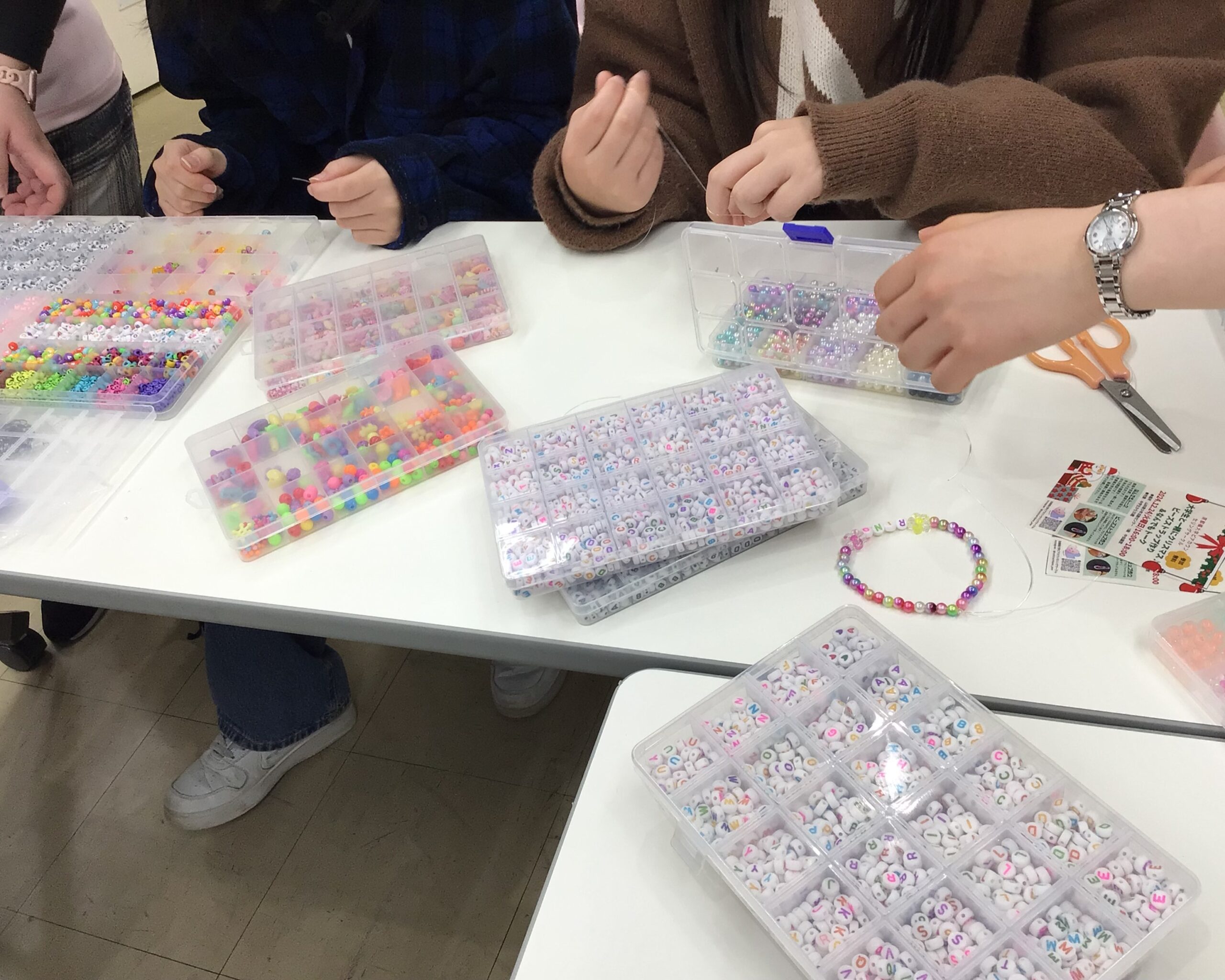「やませいフェスタ」での出展後、クリスマスやバレンタインデー時期に、「ビーズストラップづくり」をしながら、中高生と恋愛や月経、進路のことなどの話をして交流するプログラムを実施していました。