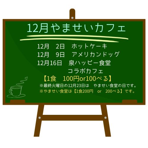 毎週火曜日の夕方(最終火曜日は「やませい食堂」)、青少年を対象に100円(べる)で軽食が食べられます♪